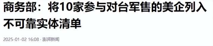 2026年1月2日商务部突然发布公告,宣布将洛克希德·马丁导弹与火控公司等10家美国企业列入到不可靠实体清单中。