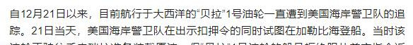 从2025年12月21日开始,美国海岸警卫队就一路追击“贝拉1号”。